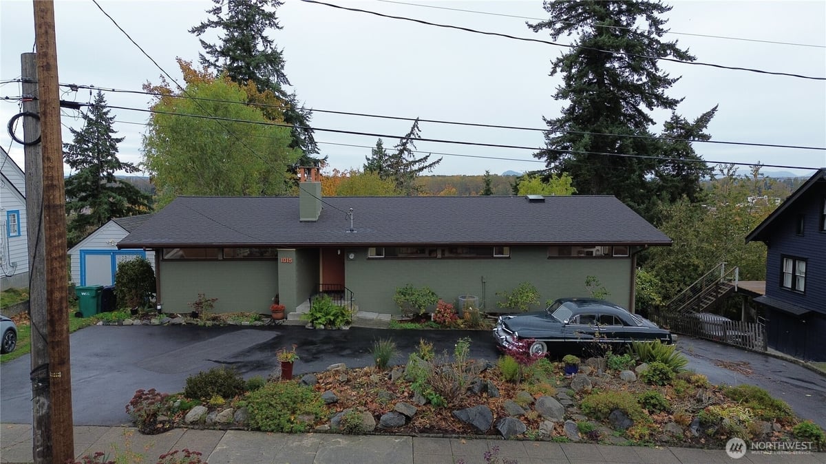 Classic Hillcrest Mid-Century Modern home, full of charm, light, and character. Step inside to a huge open living and dining area with vaulted ceilings, clerestory windows, and a cozy gas fireplace. Expansive windows let in tons of natural light. Upstairs, you'll find three comfortable bedrooms and 1.75 baths. Downstairs features a second kitchen, large bedroom, full bath, and a spacious family room with a wood burning fireplace that opens out to a covered patio. Original built-in cabinets and great storage throughout the home. The lower level is perfect for a MIL suite, guest quarters, or even rental income--with its own private entrance. You'll love the easy I-5 access, and convenient distance to local amenities.